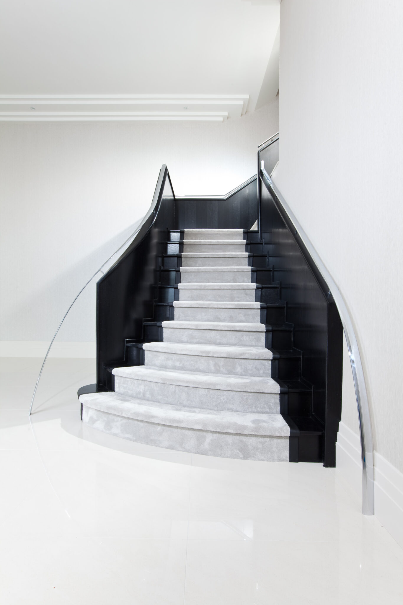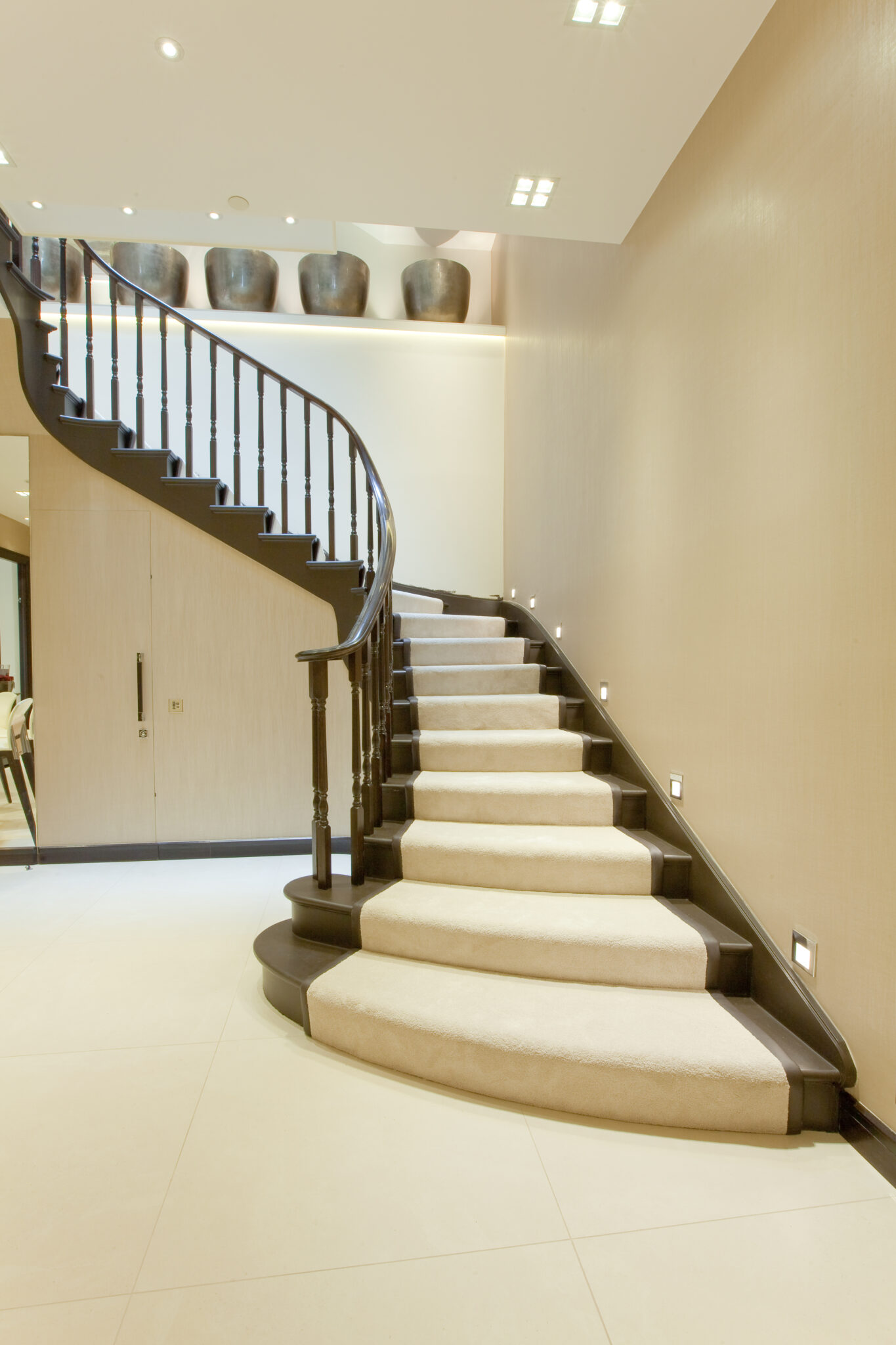 Expertly fitted stair carpets and runners, tailored to handle curves, angles, and detailed architectural features.